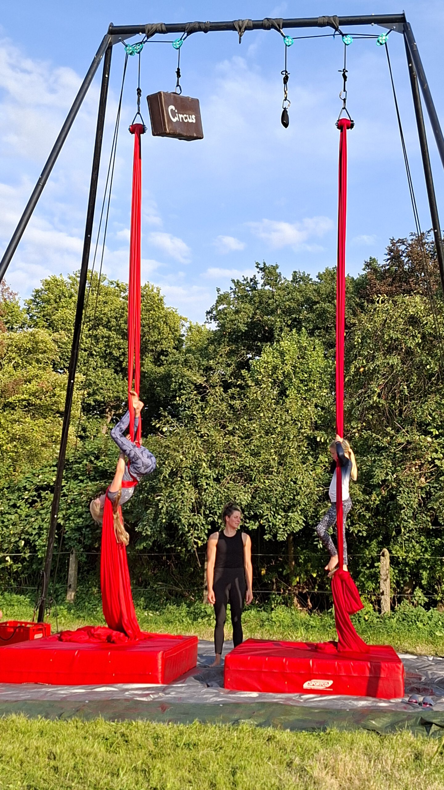 Auf der Wandelwiese können wir jonglieren lernen, Akrobatik machen, am Trapez und Vertikaltuch tolle Kunststücke üben und viele andere Zirkuskünste ausprobieren.